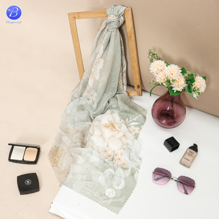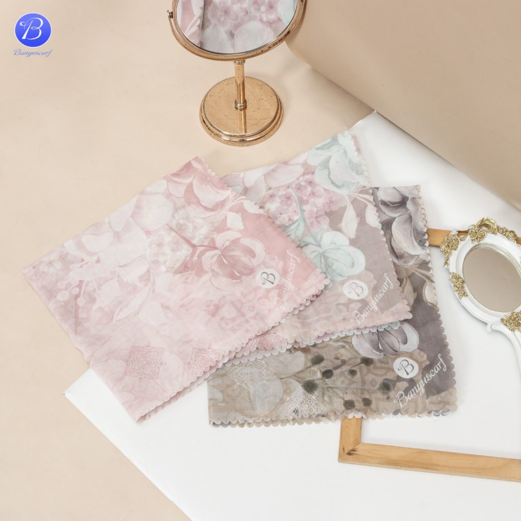 Seri Hijab Cantik dari Banyu Scarf  yang terinspirasi dari nama daerah di Kota Banyuwangi. Perpaduan Warna Lembut dengan motif Bunga Unik.
