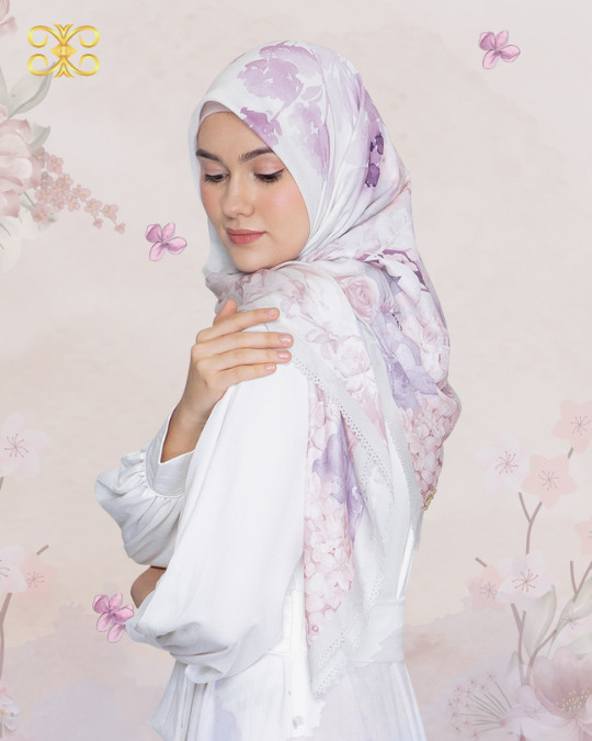 Seri Hijab Cantik dari Belebbe Scarf dengan motif Fleur.
