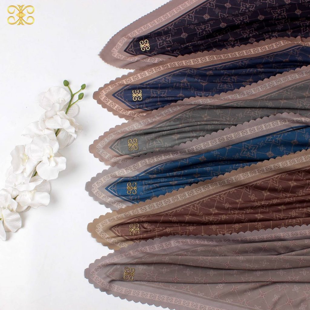Hijab Exclusive yang di print dengan mesin Jepang ternama dengan tinta bersertifikat asli OEKO-TEX yang aman untuk kulit.